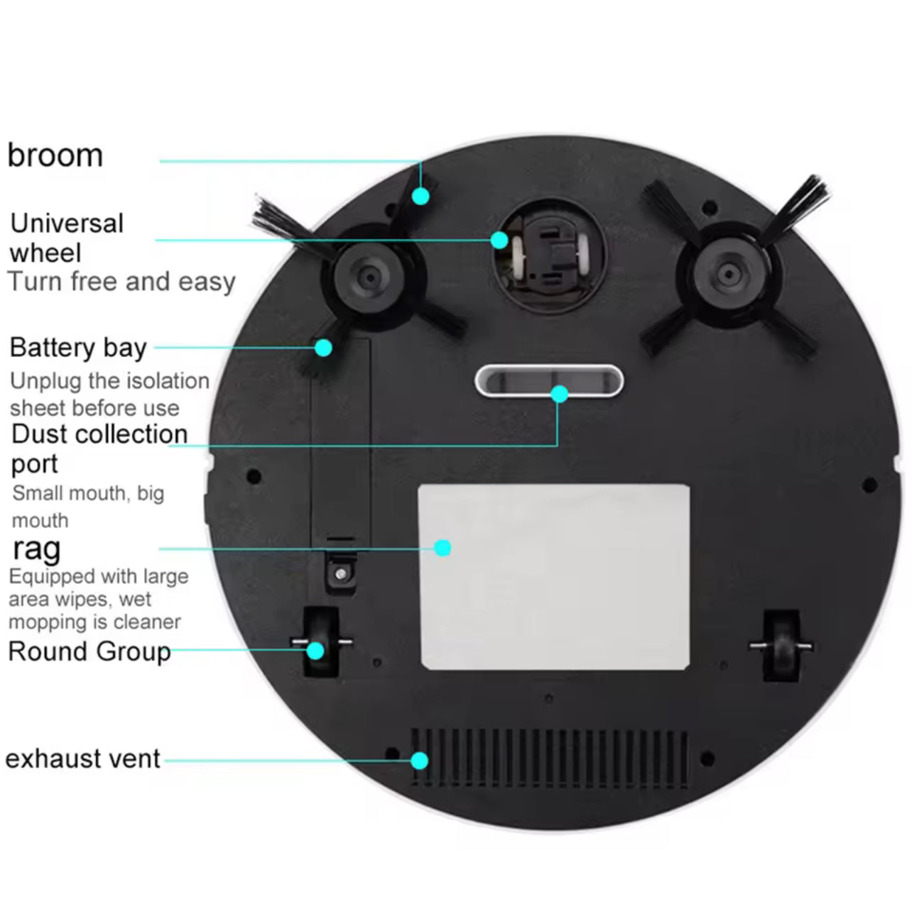 ✔ 3-in-1 function: sweeping, vacuuming & mopping